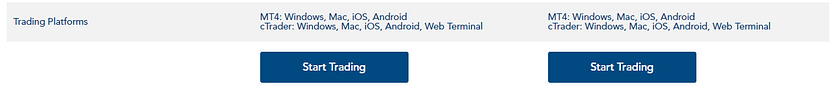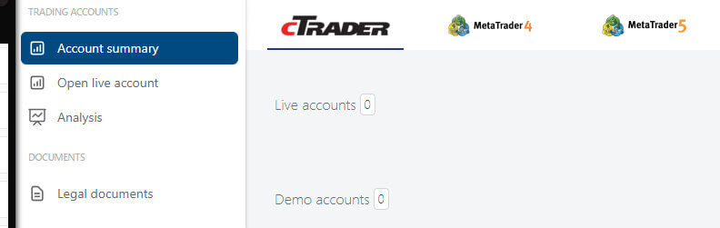 Klien dapat membuka dua jenis akun, yang satu tidak memiliki komisi dan yang lainnya memiliki spread nol, dengan platform trading yang tersedia untuk trading adalah MT4, MT5, dan cTrader.