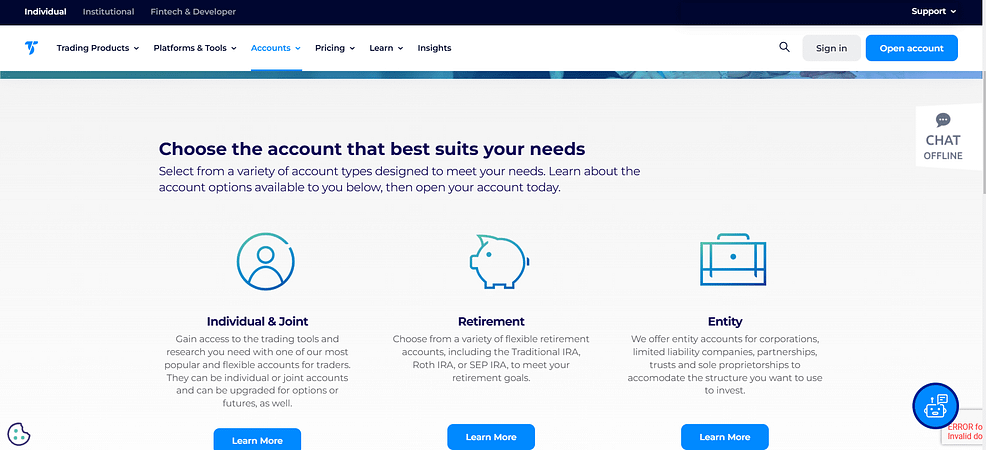 - Choose Account Type: Select from Individual, Joint, IRA, or Corporate accounts.
