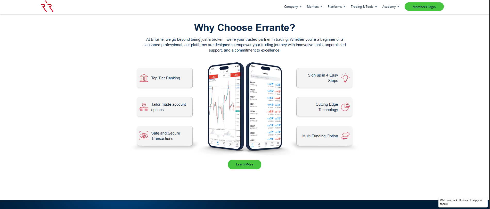 From a branding perspective, Errante positions itself as transparent, integrity-driven, and client-centric.It offers educational content — webinars, tutorials, market analysis — aiming to support both novice and advanced traders. In marketing materials, it also cites “0% fees” on deposits and withdrawals as a benefit, at least in some jurisdictions.