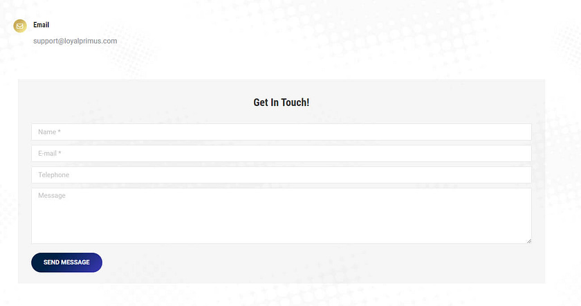 When it comes to customer support, Loyal Primus falls short in providing comprehensive assistance and readily accessible information. Users can navigate to the “Contact” link in the main menu to find information regarding customer support channels. However, it is worth noting that Loyal Primus offers limited customer support options, with only a contact form and an email address (support@loyalprimus.com) available for communication.