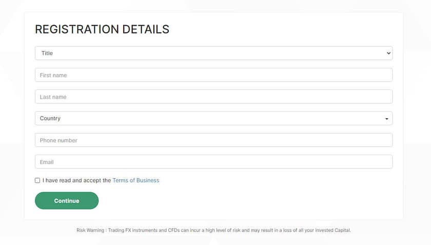 Following that, you will be taken to the registration page. You will need to fill in your name, country, phone number, and Email address here. You will also need to agree to their “business terms.”.