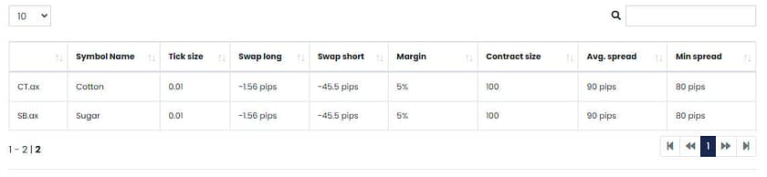 Danh sách hàng hóa của AximTrade đang thiếu trầm trọng, chỉ có bông và đường. Tuy nhiên, cần lưu ý rằng Kim loại và Năng lượng là các loại hàng hóa kỹ thuật, nhưng nhiều nhà môi giới gán cho chúng những danh mục đó để dễ sử dụng.