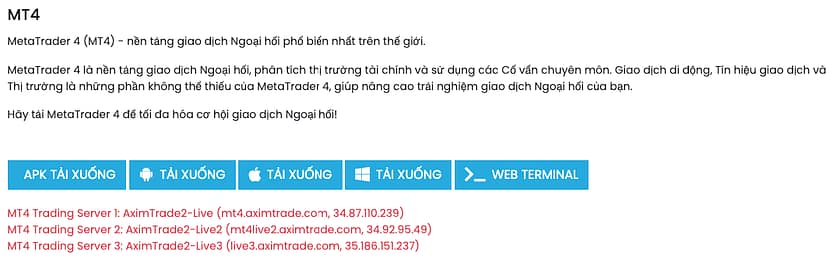 Nhiều nhà môi giới cũng cung cấp nền tảng MT5, hoặc đôi khi là một nền tảng độc quyền. AximTrade cũng không có, nhưng họ cung cấp một thiết bị đầu cuối web MetaTrader. Tùy chọn duy nhất khác về mặt phần mềm cho phép khách hàng giao dịch là ứng dụng giao dịch trên thiết bị di động của họ.