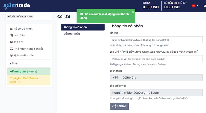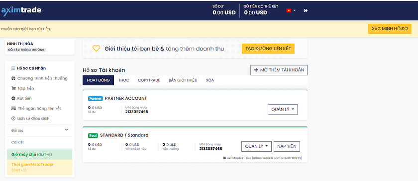 AximTrade Gửi và Rút tiền